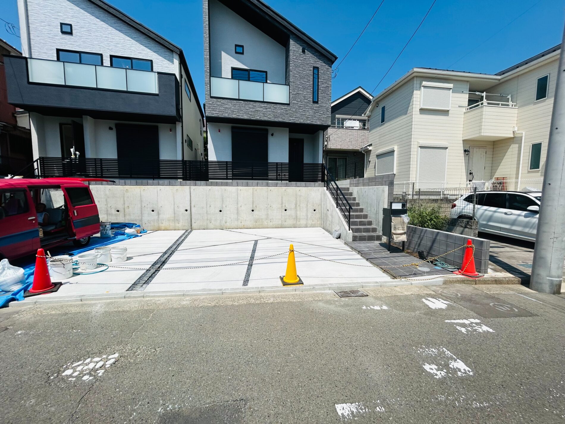施工後は、シャッターゲートと門扉、機能門柱によって敷地全体に統一感が生まれ、