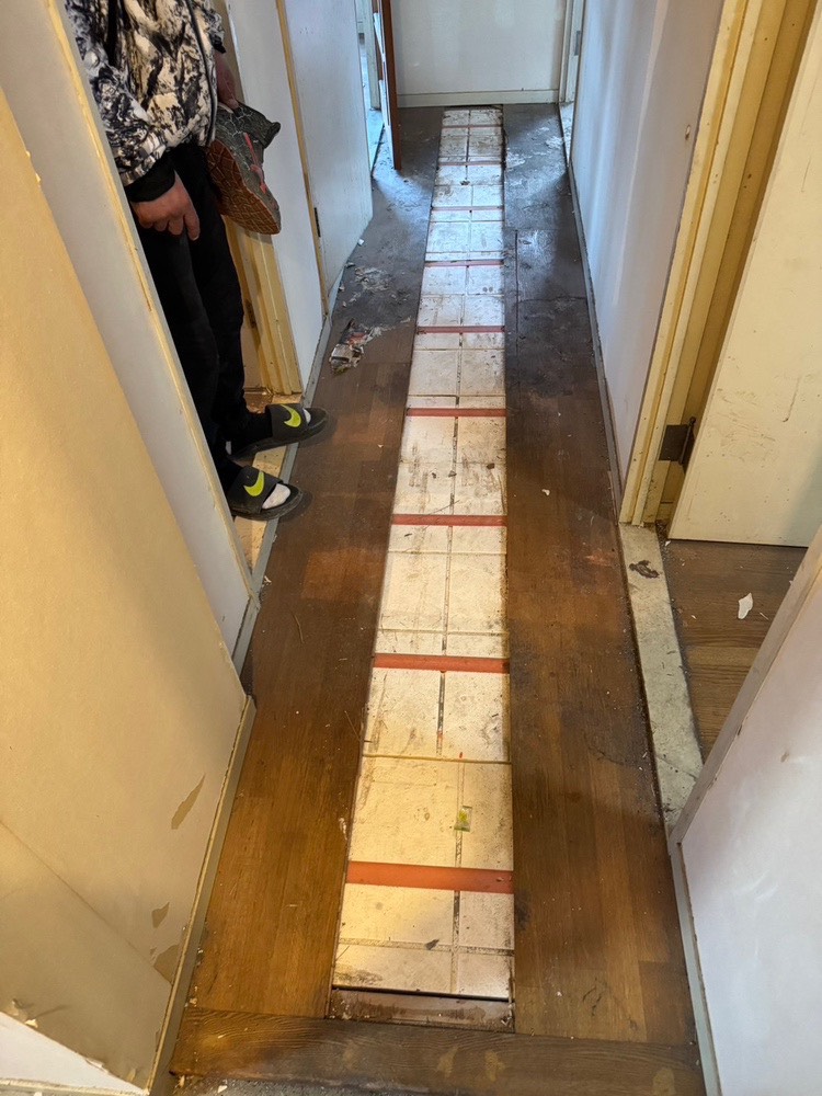 ・見た目だけでなく、将来的な床鳴りや下地の劣化も懸念される状況でした。