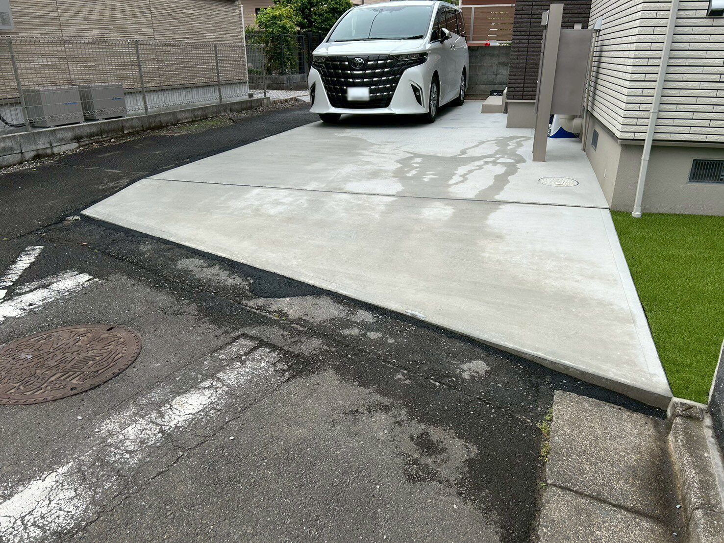 重量のある大型ミニバンもしっかりと支える、強固な土間コンクリートを施工しました。
