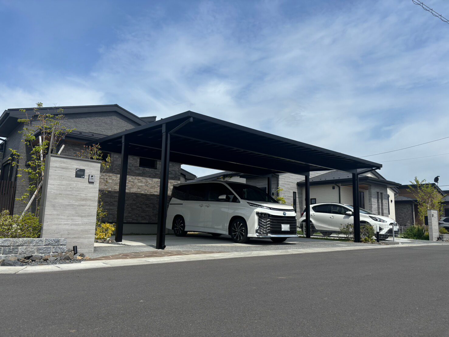 スタイリッシュなブラックフレームのカーポートを設置。